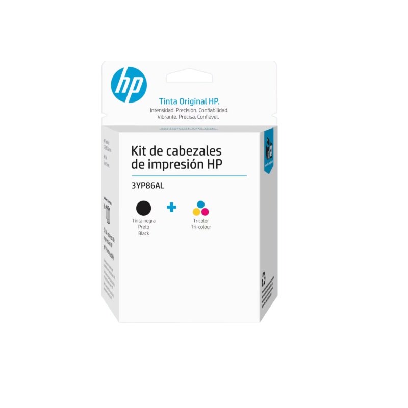 El cabezal HP 3YP86AL es un kit de cabezales de impresión diseñado para sistemas de tinta tipo tanque / Ink tank / GT de HP, que combina versiones para negro y tricolor (cian, magenta y amarillo).En otras palabras, este kit usualmente contiene dos unidades de cabezal: una que maneja el negro y otra que maneja los tres colores — lo que permite cubrir toda la gama de impresión a color + monocromática con un solo paquete.
