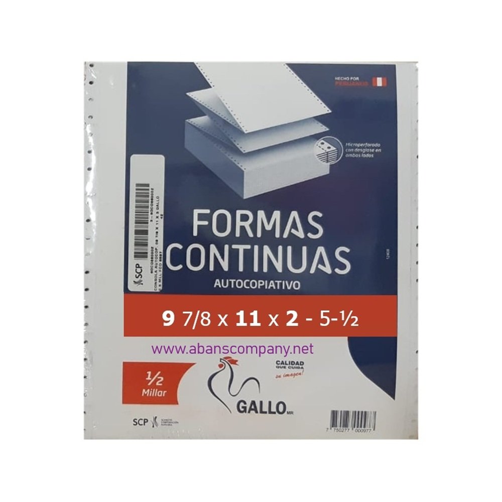 PAPEL CONTINUO QUIMICO 56gr. 9 7/8x11x2 – C/M GALLO