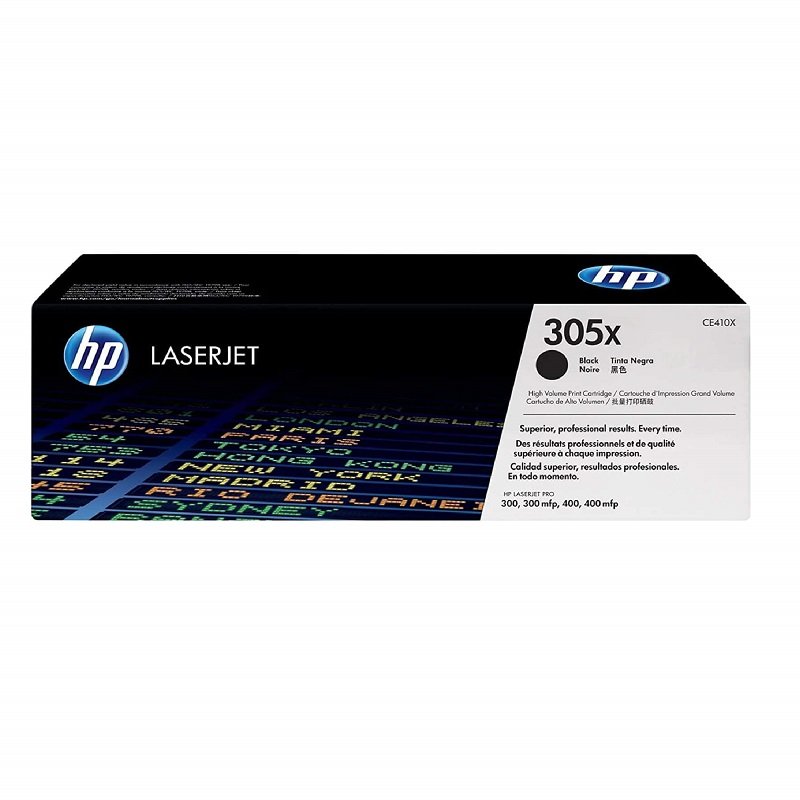 El tóner HP CE410X (305X) es un cartucho de alto rendimiento, de color negro, para impresoras LaserJet Pro 400 y modelos relacionados, con una capacidad de 4,000 páginas y diseñado para ofrecer impresiones de alta calidad, textos nítidos y detalles precisos en entornos de oficina.Es un producto original de HP que garantiza un rendimiento constante, protege la impresora y la información, y es parte de un programa de reciclaje de productos usados.