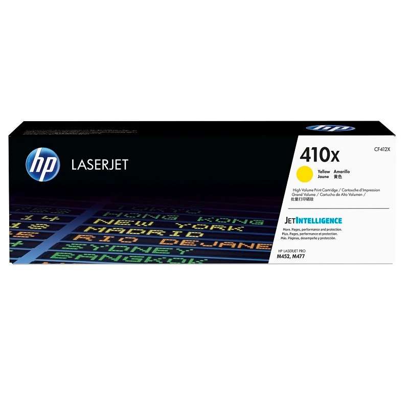 El tóner HP 410X de color amarillo (CF412X) es un cartucho de suministro para impresoras HP LaserJet Pro, diseñado para ofrecer impresiones nítidas y de alta calidad en amarillo. Este modelo específico tiene una capacidad de rendimiento de aproximadamente 5,000 páginas y es compatible con los modelos de impresoras HP LaserJet Pro M477.